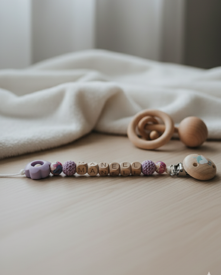 - Sécurité avant tout : Fabriquée avec des perles en silicone alimentaire (sans BPA) et en bois naturel.