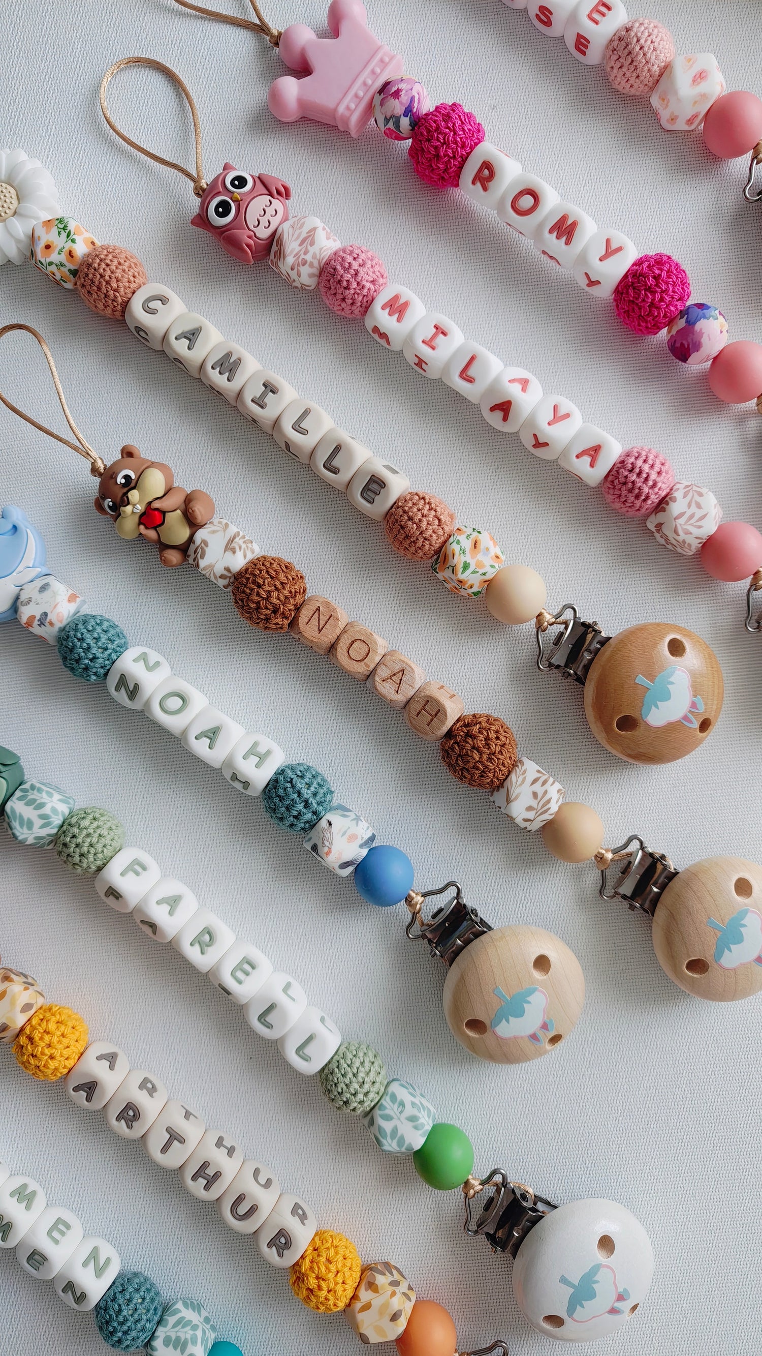 Nos attaches tétines sont conçues avec des perles en silicone alimentaire de haute qualité, sans BPA, et en bois naturel. Douce pour les gencives de bébé et conformes aux normes de sécurités européennes (EN125586), elles allient style et sérénité au quotidien.